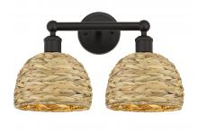 Woven Rattan - 2 Light - 17 inch - Antique Brass - Natural shade - Bath Vanity Light