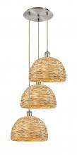 Woven Rattan - 3 Light - 19 inch - Antique Brass - Natural Shade - Cord hung - Multi Pendant