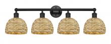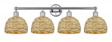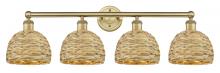 Woven Rattan - 4 Light - 35 inch - Antique Brass - Natural shade - Bath Vanity Light