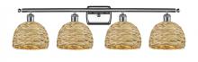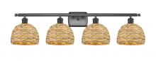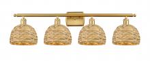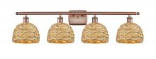 Woven Rattan - 4 Light - 38 inch - Antique Brass - Natural Shade - Bath Vanity Light