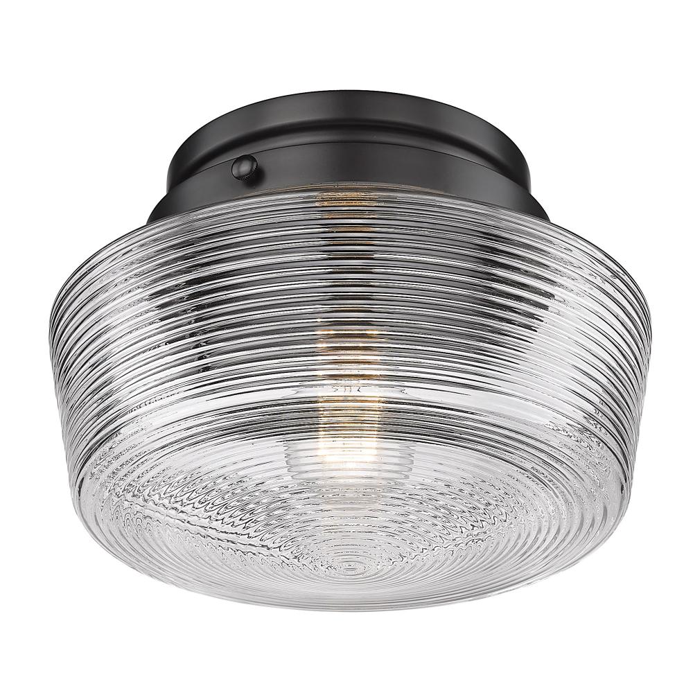 Discover the appeal of modern industrial design with the Wry Lighting Holloway 1-light Flush Mount in Matte Black. The clear glass shade combines with a matte black frame to create a welcoming atmosphere. The clear glass shade provides brilliant, unobstructed light, highlighting the beauty of the bulb, while the smooth, non-reflective matte black finish delivers timeless elegance. Ideal for low ceilings, this flush mount light is damp location rated, making it suitable for covered spaces like bathrooms, closets, or hallways. It requires 1 E26 Medium base bulb (not included) with a maximum wattage of 60. With overall dimensions of 10.63"W x 7.75"H x 10.63"D, this fixture easily enhances compact designs while providing widespread illumination. Experience the iconic look of vintage industrial style with this versatile flush mount that complements any decor.
