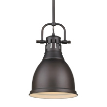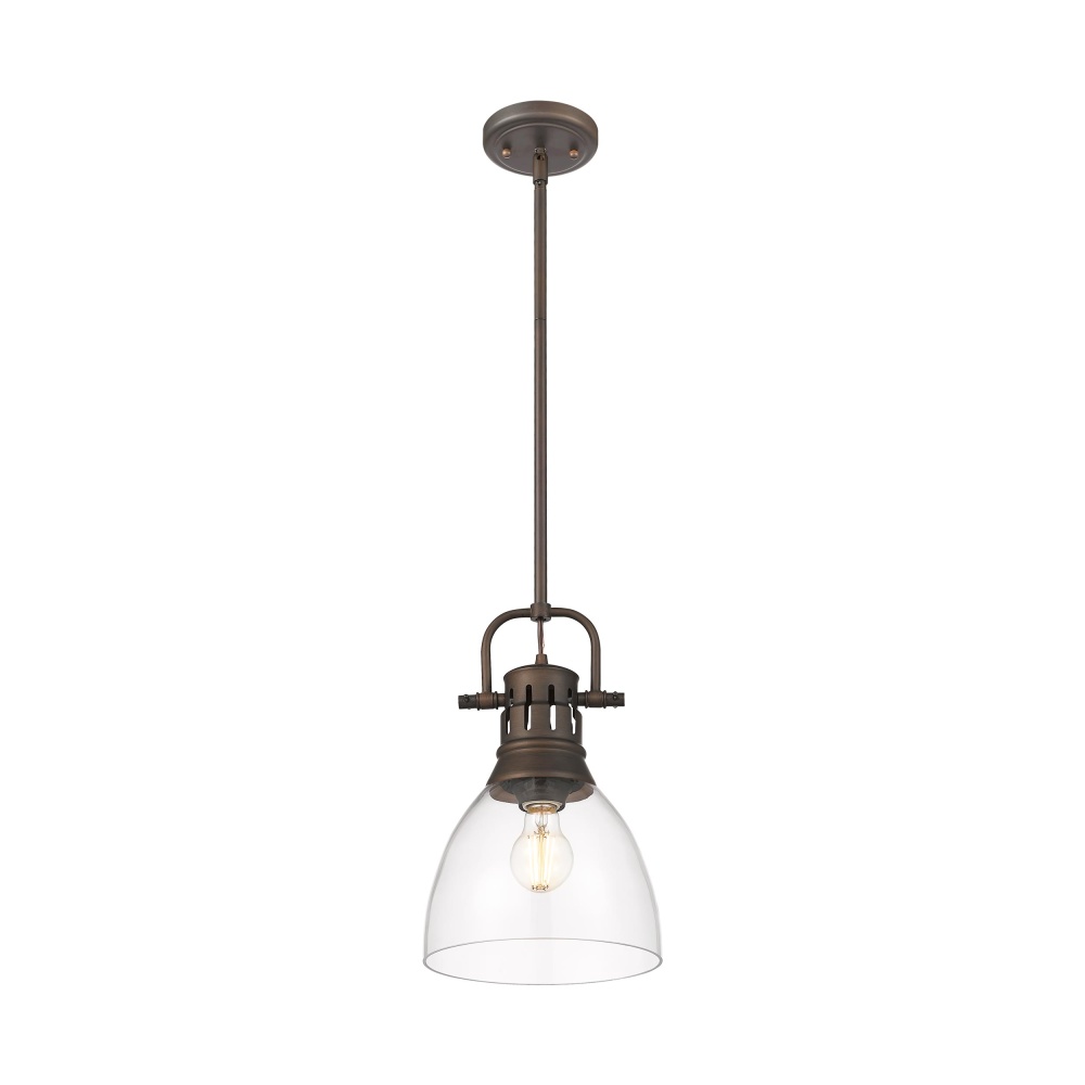 Yep by Golden Lighting Duncan 1-light 9in rod hung Pendant in Rubbed Bronze and Clear Glass