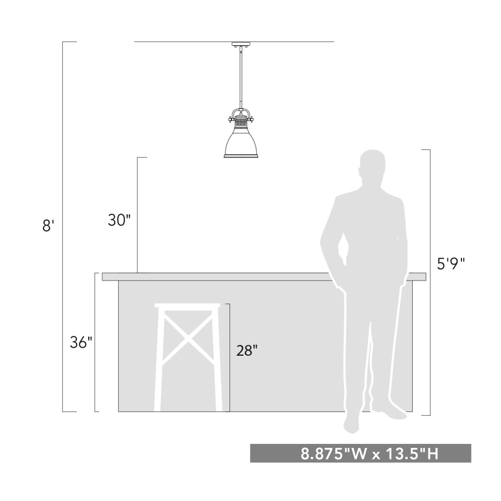 Bring farmhouse elegance into your home with the Yep by Golden Lighting Duncan 1-light 9in Rod Hung Pendant. Featuring a clear glass shade and a rubbed bronze frame, it creates a welcoming atmosphere. The clear glass shade allows brilliant light to shine unobstructed, showcasing the bulb while enhancing the overall design with a clean and polished look. This pendant light showcases a timeless rubbed bronze finish that enhances rustic charm, complementing a wide array of styles, from traditional to industrial. Versatile for kitchens, dining rooms, or bedrooms, this fixture is Damp Location Rated, suitable for covered and semi-enclosed spaces. It’s easy to install on angled ceilings and boasts an adjustable height from 22.25" to 58.25". Overall Dimensions: 8.88"W x 14.25"H x 8.88"D. Requires 1 E26 Medium base bulb (not included), with a maximum wattage of 100. Enhance your decor with this quality piece that embodies stylish simplicity and eloquent craftsmanship.