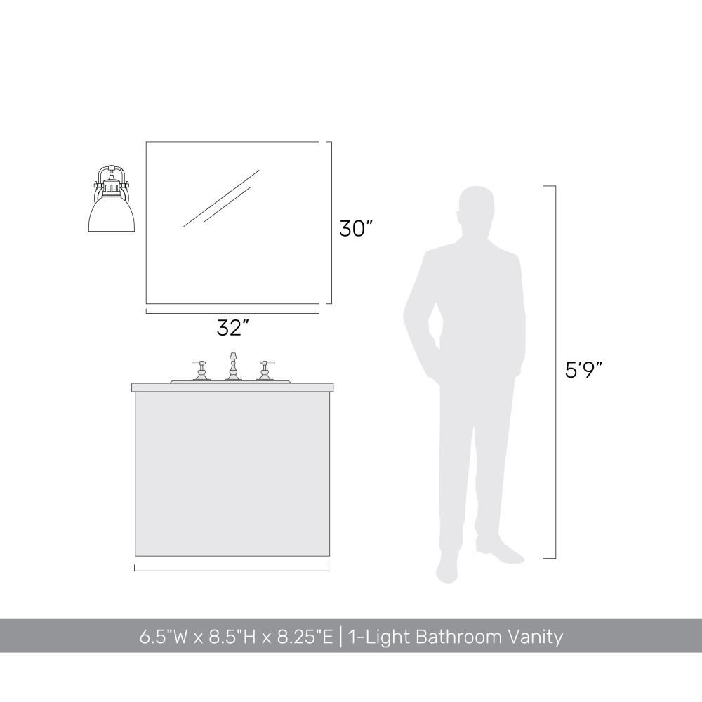 Bring farmhouse elegance into your home with the Yep by Golden Lighting Duncan 1-light Vanity. Featuring a glass shade and a Rubbed Bronze frame, it creates a welcoming atmosphere. The clear glass shade offers unobstructed light and a polished look, showcasing the bulb beautifully to create warm, inviting illumination. This versatile detail complements various styles, enhancing the charm of any space. With its Rubbed Bronze finish, this vanity light radiates warmth and sophistication, making it suitable for modern farmhouse, transitional, or industrial decors. Brighten up bathrooms with dedicated lighting that flatters while providing practical task illumination. It is Damp Location Rated, suitable for covered and semi-enclosed spaces like bathrooms and laundry rooms. The adjustable directional heads can pivot, allowing customized lighting to highlight specific areas. Overall Dimensions: 6.5"W x 8.5"H x 8.25"D, requiring 1 E26 Medium base bulb (not included), with a maximum wattage of 100. This fixture not only enhances visibility but also makes a stylish statement in your interior design.