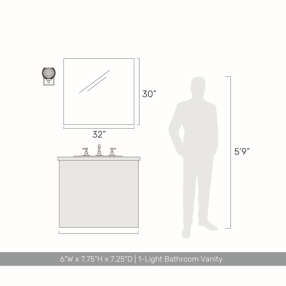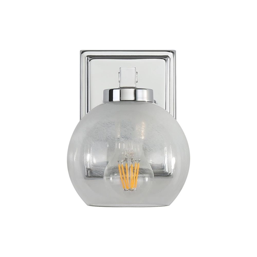 Bring glam elegance into your home with the Yep by Golden Lighting Elliott 1-light Vanity. Featuring a glass shade and a Chrome frame, it creates a welcoming atmosphere. The Clear Alabaster glass shade enhances the fixture with its spherical shape, offering a soft and diffused glow, reminiscent of natural alabaster stone, while maintaining a sleek modern silhouette. Its unique design adds a touch of organic elegance to any setting. The Chrome finish provides a brilliant, mirror-like shine that seamlessly integrates into various decor styles, from ultra-modern to classic. This universal appeal is perfect for adding a touch of brightness to your space. Damp rated and designed for bathrooms, covered porches, and laundry rooms, this vanity light requires 1 E26 Medium base bulb (not included) with a maximum wattage of 60. Create the perfect atmosphere in any space with its illuminating quality. The overall dimensions are 6"W x 7.75"H x 7.25"D, making it an ideal choice for versatile applications. Infuse your home with quality and style with this beautiful fixture.