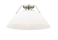 Bring industrial elegance into your home with the Yep by Golden Lighting Orwell 3-light Flush Mount. Featuring a Metal shade and a Matte Black frame, it creates a welcoming atmosphere. The Metal shade in classic Matte Black delivers a deep, uniform color with a non-reflective matte sheen that enhances the fixture's contemporary appeal. This Matte Black finish represents a timeless aesthetic that effortlessly fits any decor style, from minimalist to industrial. Its smooth surface absorbs light, adding sophistication to your space. Ideal for low ceilings in hallways, closets, laundry areas, bathrooms, and more, this flush mount is damp location rated, suitable for covered areas with occasional moisture. Requires 3 E26 Medium base bulbs (not included), max wattage per bulb is 60. Overall dimensions are 18.75"W x 9.25"H x 18.75"D. Elevate your home's interior with this stylish and functional fixture, designed for quality and versatility.