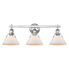 Bring industrial elegance into your home with the Yep by Golden Lighting Orwell 3-light Vanity. Featuring a metal shade and an aged brass frame, it creates a welcoming atmosphere. The metal shade offers a classic Matte Black finish that embodies clean, modern style. Its non-reflective matte surface absorbs light, creating a soft and sophisticated look that works seamlessly in various decor styles. Embrace timeless elegance with the aged brass finish, which provides a warm, inviting glow reminiscent of vintage heirlooms. This durable electroplated finish adds character to traditional or industrial-inspired spaces. Ideal for bathrooms, this vanity light is Damp Location Rated, making it suitable for covered and semi-enclosed spaces with occasional moisture. Requires 3 E26 Medium base bulbs (not included), with a maximum wattage of 100 per bulb. Overall dimensions are 27.25"W x 9.88"H x 8.5"D, providing ample illumination while enhancing the aesthetic of your space. Let the Yep by Golden Lighting Orwell transform your bathroom into a stylish retreat with quality craftsmanship and elegant design.